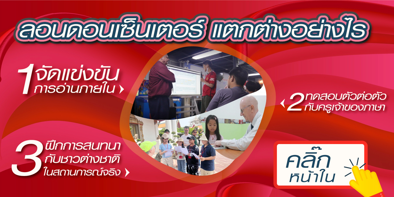 โรงเรียนสอนภาษาอังกฤษลอนดอนเซ็นเตอร์ ก่อตั้งในเดือนเมษายน พ.ศ. 2556 ด้วยเป้าหมายให้คนไทยเข้าถึงภาษาอังกฤษมากขึ้น ในราคาที่ทุกคนสามารถเรียนได้ เปิดสอนทุกวัยตั้งแต่อนุบาลถึงวัยทางาน โดยใช้หลักสูตรแกนกลางของกระทรวงศึกษาธิการและตาราการเรียนการสอนของสานักพิมพ์อ็อกซ์ฟอร์ด พร้อมด้วยอาจารย์เจ้าของภาษาที่มีประสบการณ์ในการสอนทุกระดับ ตลอด 12 ปีที่ผ่านมา เป็นความภาคภูมิใจของโรงเรียนที่ได้สอนนักเรียนจากหลากหลายอาชีพ และมีลูกศิษย์จานวนมากที่เรียนจบไปและได้รับทุนเล่าเรียนไปศึกษาต่อระดับปริญญาตรี และ ป.โท จากมหาวิทยาลัยชั้นนา เช่น แคมบริดจ์ และ MIT ซึ่งเป็นเครื่องยืนยันคุณภาพของเราที่ไม่เพียงแค่สอนเท่านั้น แต่เรายังดูแลนักเรียนเสมือนเป็นบุตรหลานของเราเอง ที่จะต้องมุ่งมั่นไปพร้อม ๆ กับนักเรียนเพื่อให้นักเรียนทุกคนถึงเป้าหมายสูงสุด